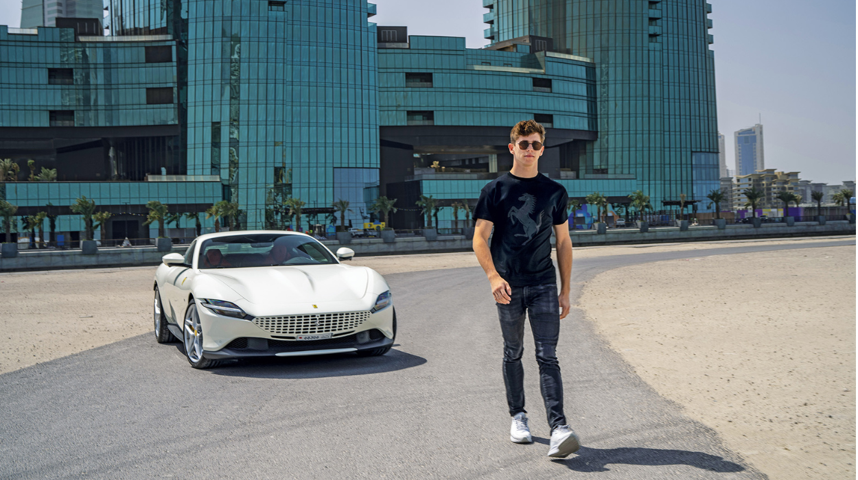 在他回到賽道上一展身手之前,花了一天時間在巴林首都麥納瑪街道上駕駛躍馬GT跑車 Ferrari Roma。「Maranello製造的跑車中,白色可能不是多數人心中的第一選擇」Arthur Leclerc笑著表示「但是當我看到這輛Roma以特殊白色調與Rosso Ferrari 的內裝搭配時,我改變了主意。」