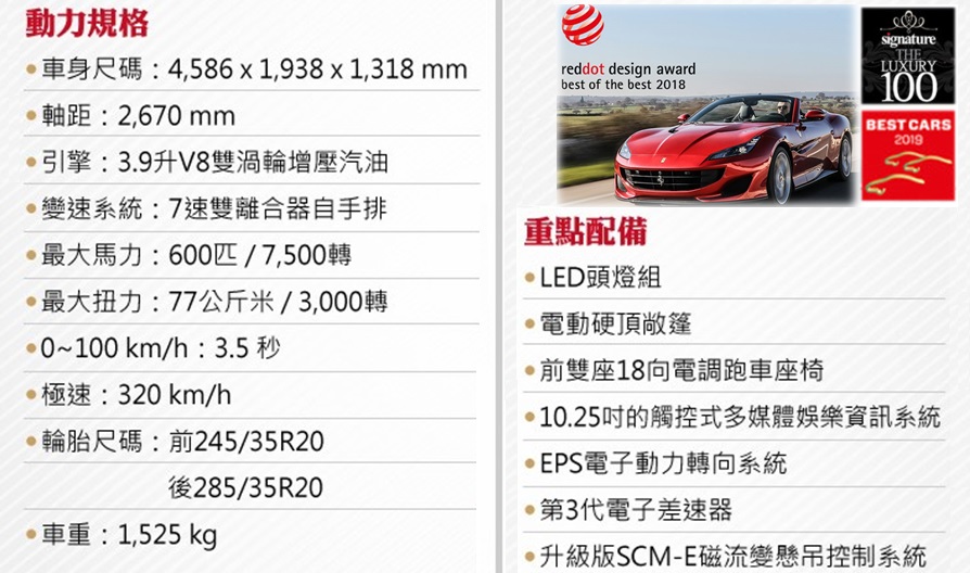 除次之外,Ferrari Portofino 也在去年再次奪下Reddot Award紅點設計大獎中最高榮譽的「Best of the Best 最佳設計獎」,成功締造躍馬品牌車型連續四年獲此殊榮的輝煌紀錄。
