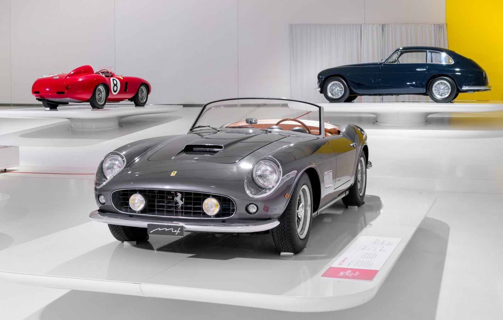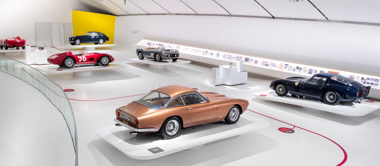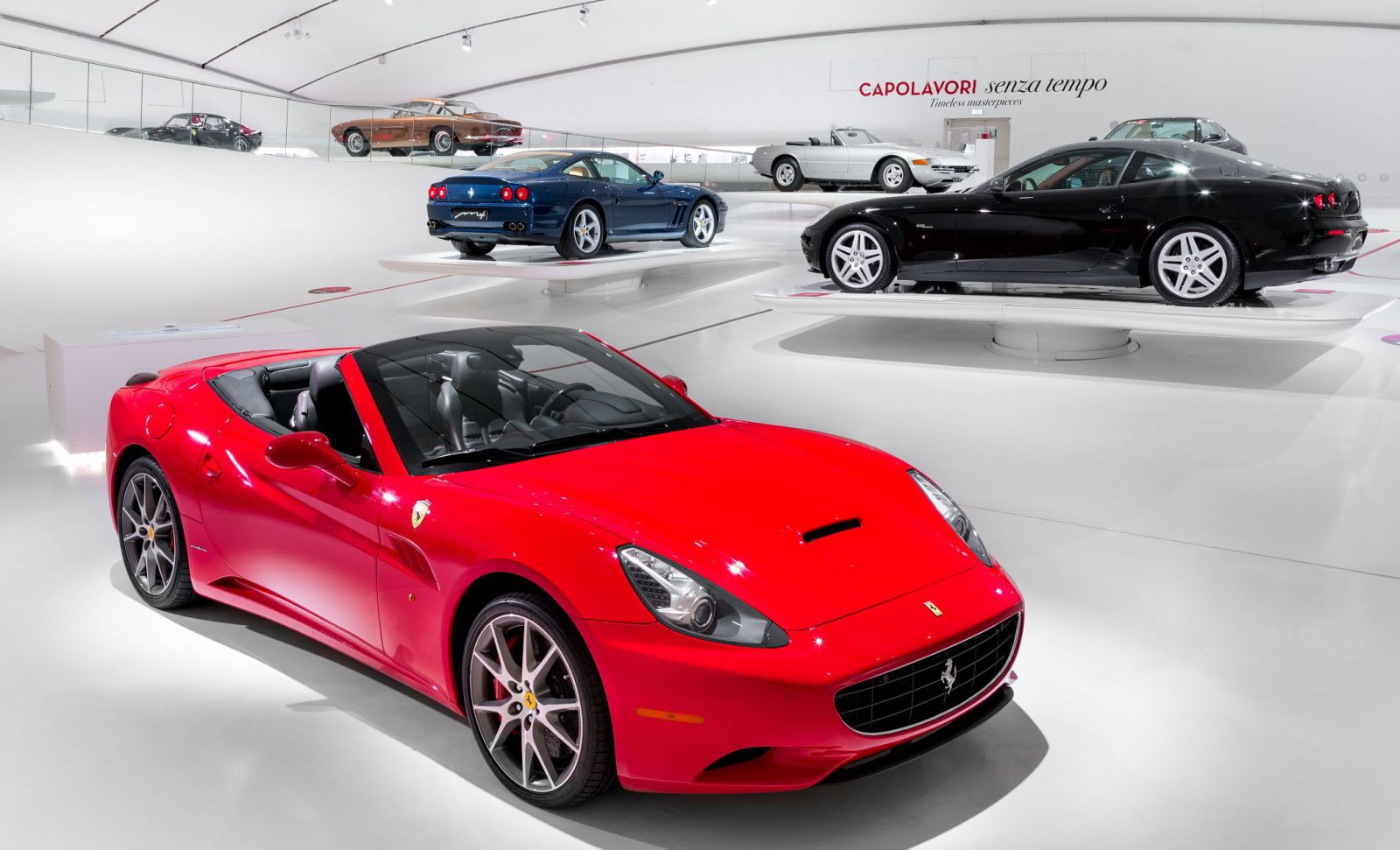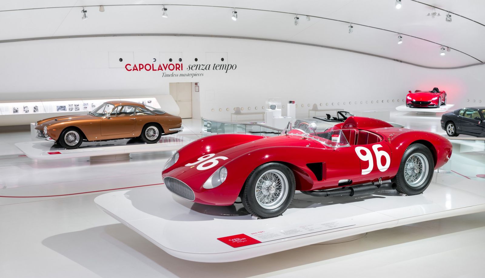 展出的車輛陣容中以1948年的166 Inter和1954年的750 Monza兩輛經典躍馬跑車揭開展覽序幕,其代表著戰後經濟繁榮奢華誘人的象徵。 以及傳承品牌傳奇的1957年250 California,接著是1962年的250 GTO和1969年的365 GTS4,以及2008年推出的California和2016年的GTC4Lusso。除此之外,現場也展出全新Monza SP1,完美詮釋五十年代經典的Barchetta車型同時定義未來,向世人展示了汽車工藝成為永恆經典的典範。